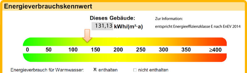 | Energieverbrauchskennwert | 131,13 kWh/(m²a) [inkl. Warmwasser] |