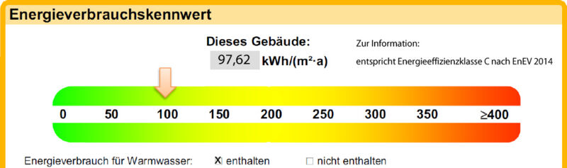 | Energieverbrauchskennwert | 97,62 kWh/(m²a) [inkl. Warmwasser] |
